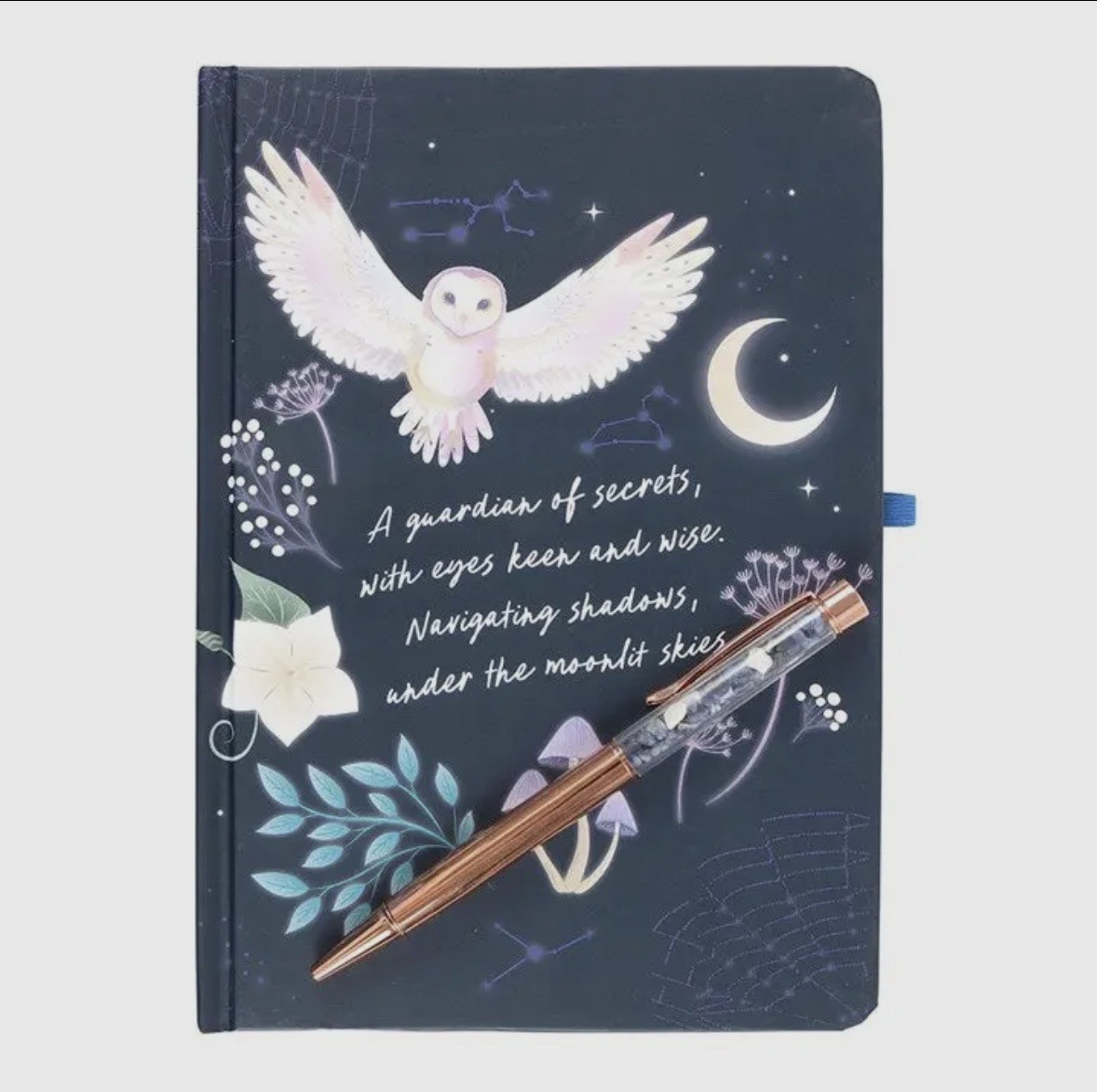 drömmar och intentioner. Den har en flygande uggla i natten omgiven av