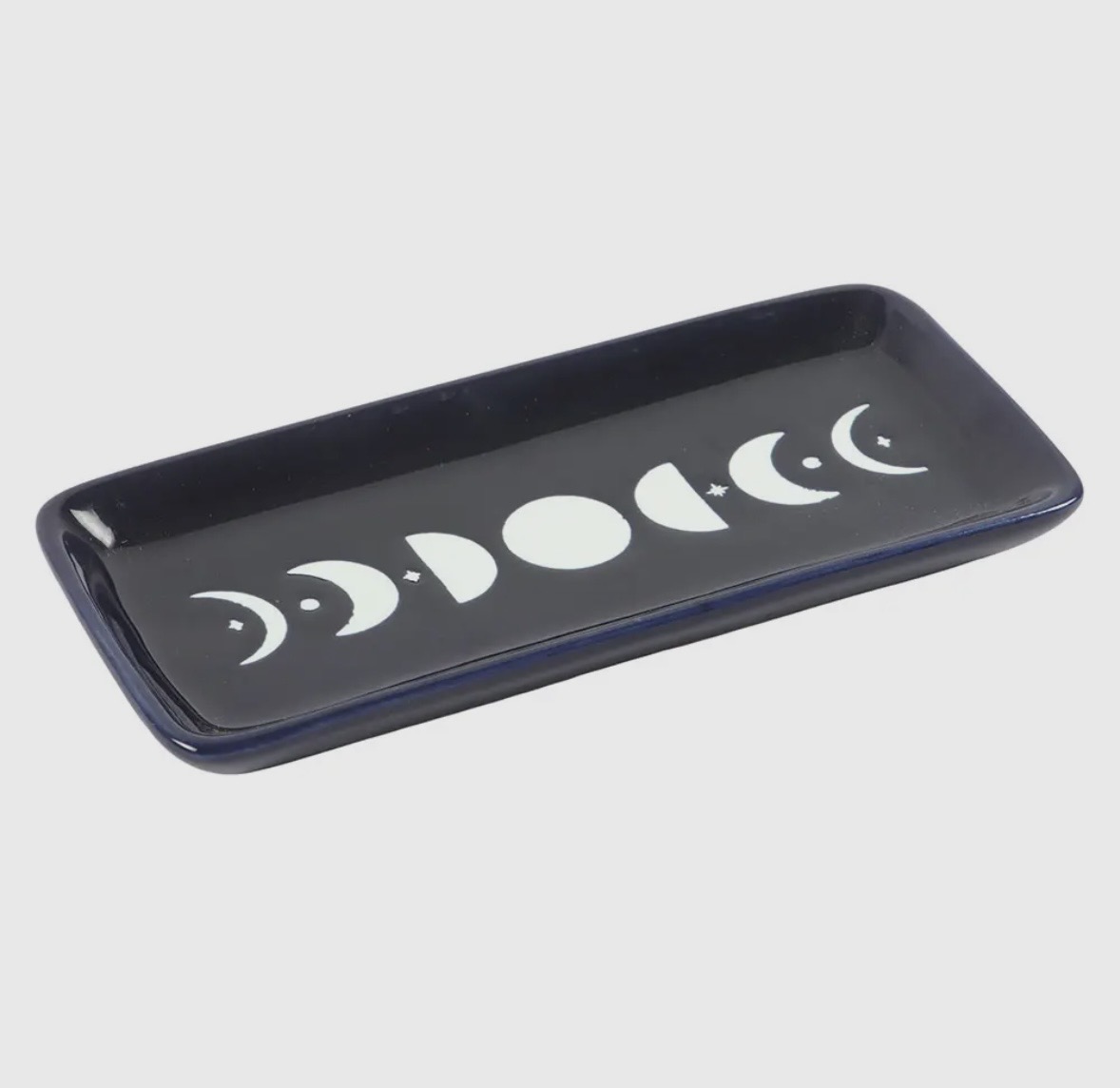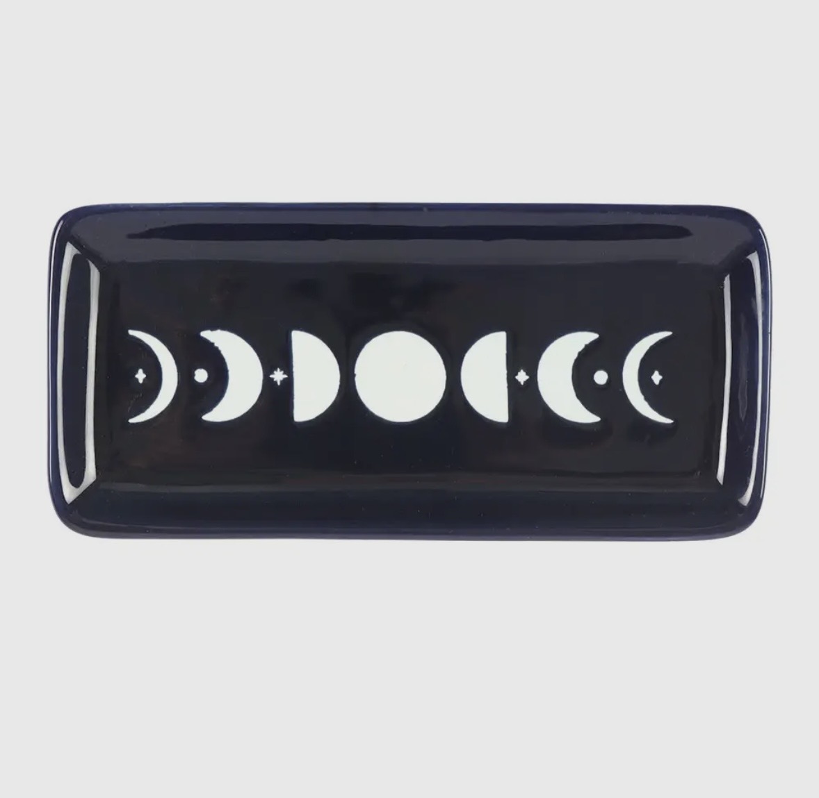 Denna prydnadsskål är dekorerad med ett månfasmotiv, vilket gör den idealisk för att hålla ringar, kristaller eller andra små skatter. En praktisk och mystisk detalj för sminkbord eller nattduksaltare.