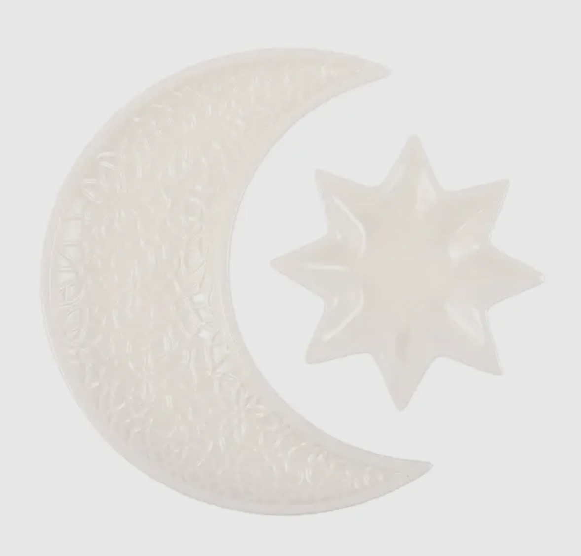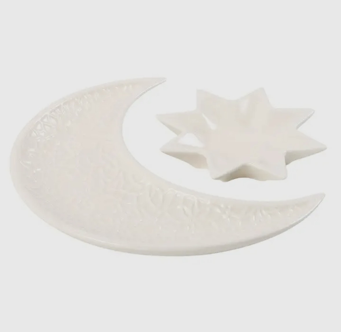 Detta eleganta set med keramiska prydnadsfat inkluderar en halvmåne och