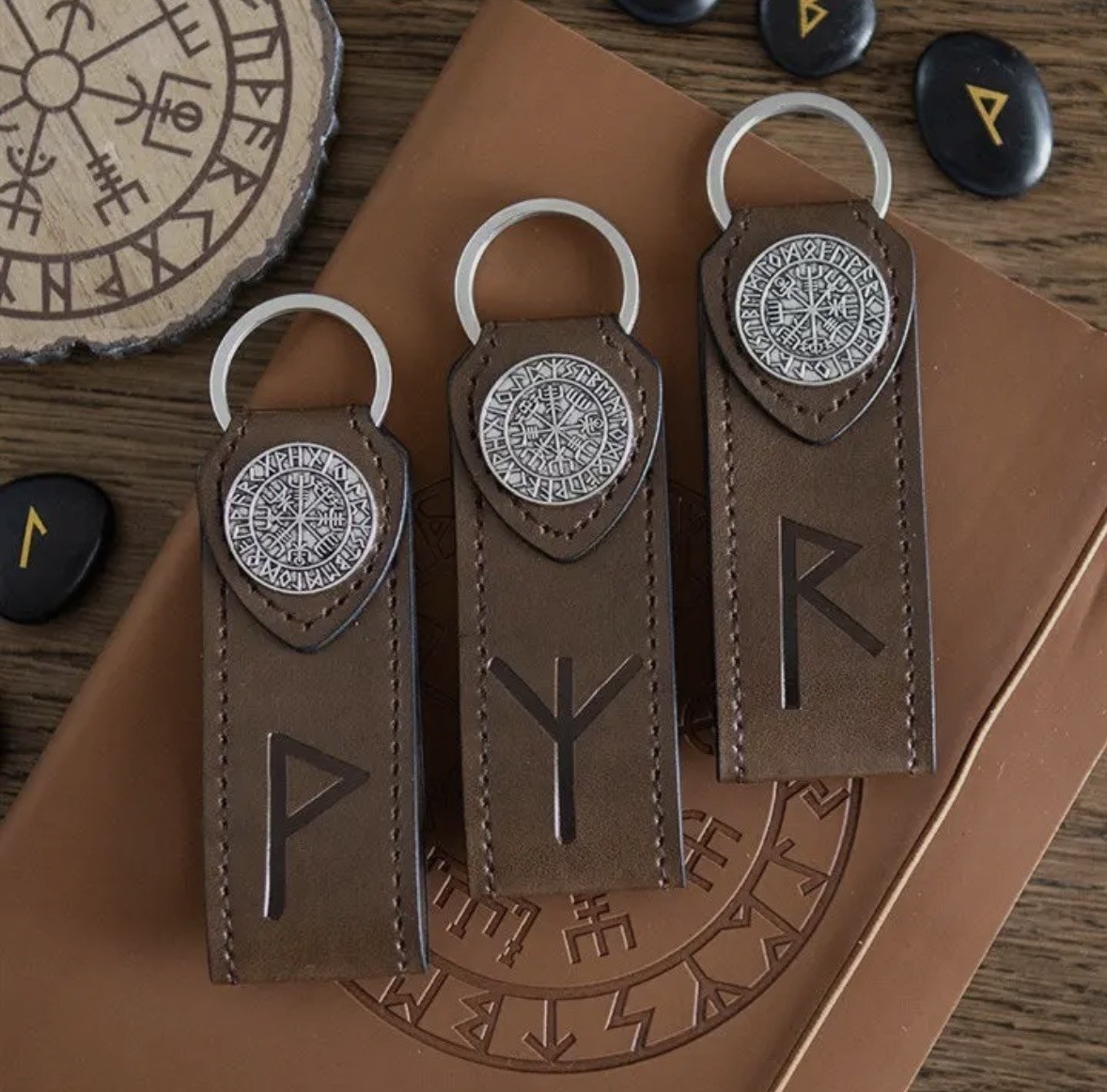 är denna vikingarun-nyckelring både robust och meningsfull. Prydd med