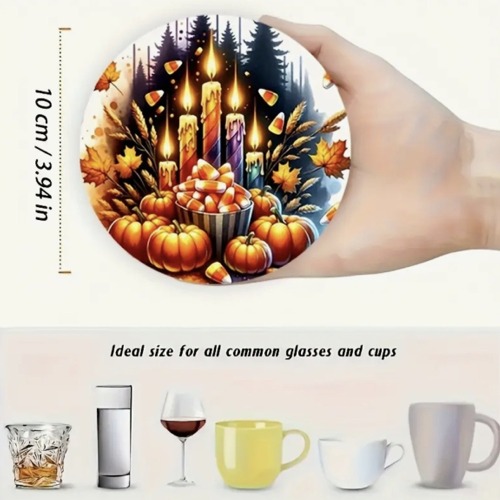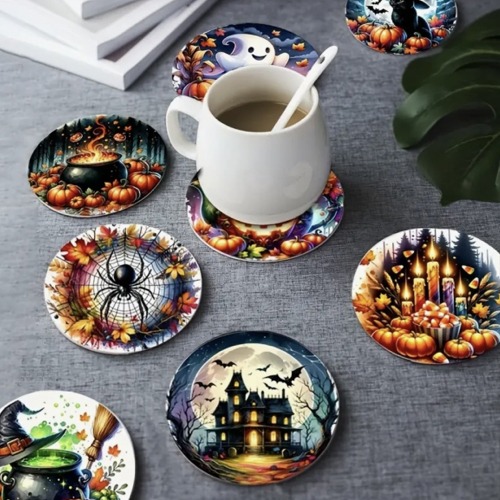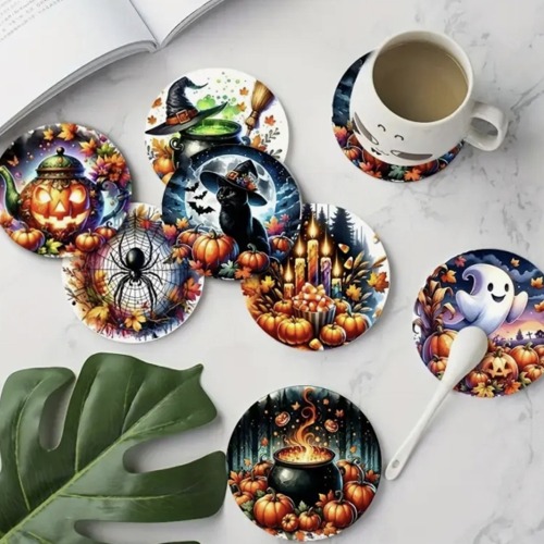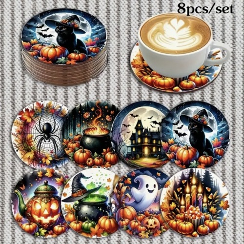 8-delars träunderlägg-set med Halloween design.