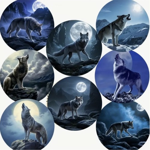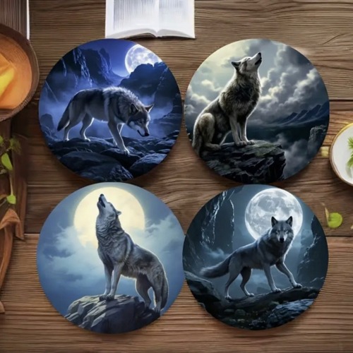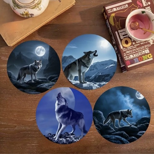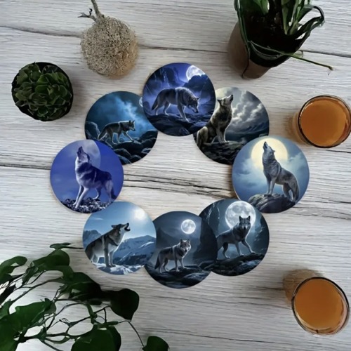 8-delars träunderlägg-set med Vargar.